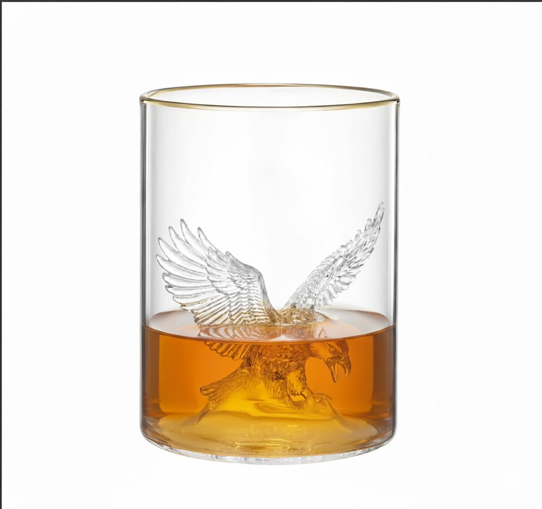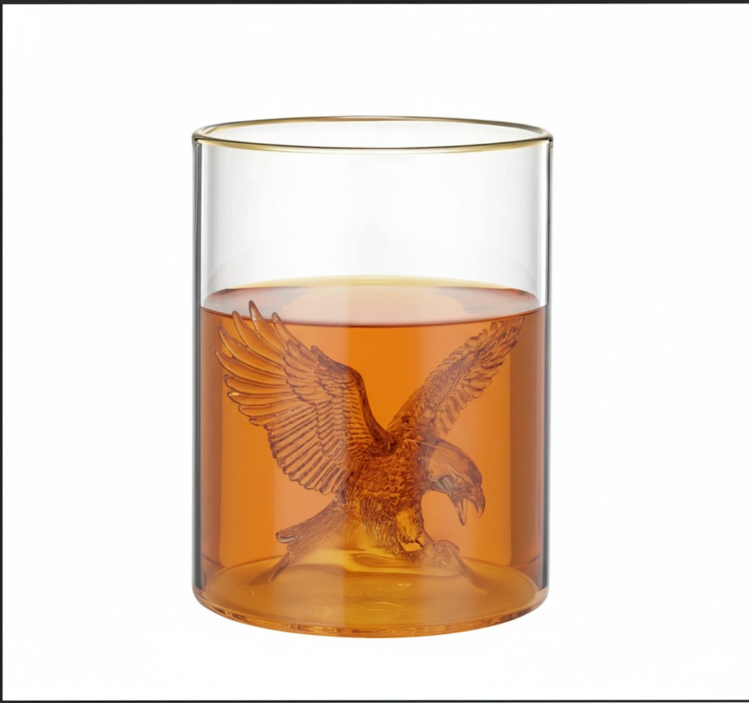 3D Eagle Whiskey Glass – 13oz Thick Bottom Gold Rim – Modern Sports Glassware